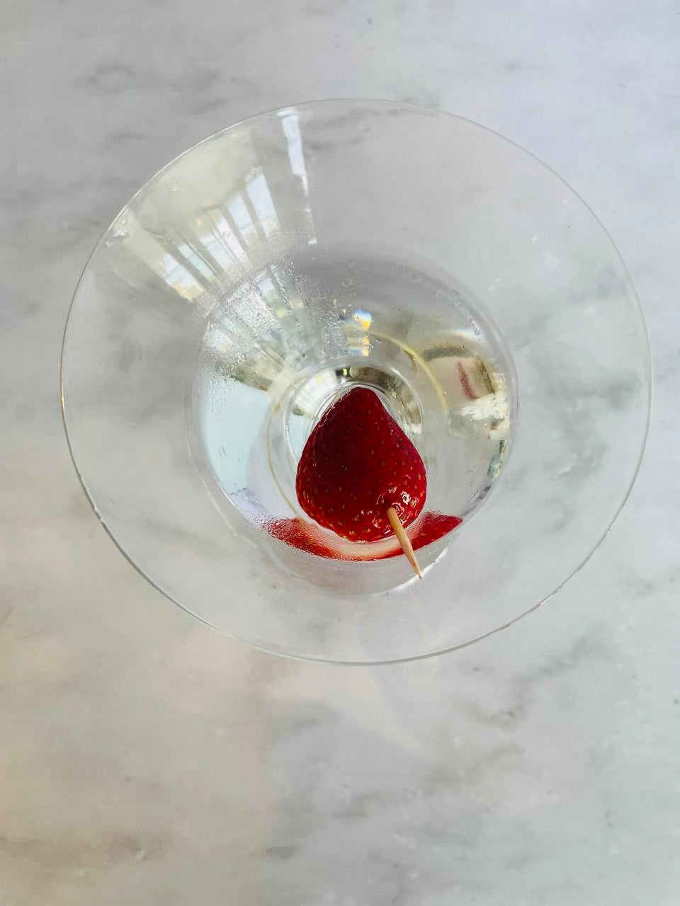 5. Garnish with a fresh strawberry on the rim or as a skewer.